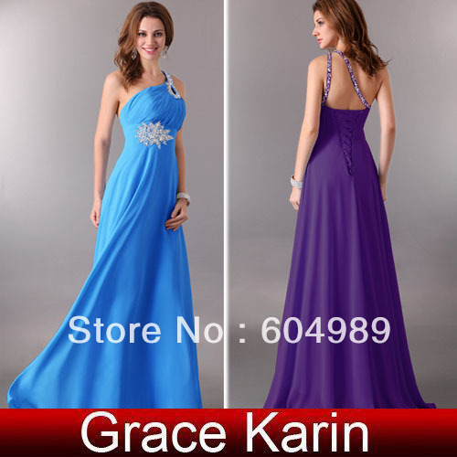 Free Shipping Grace Karin Stock Long One Shoulder Pleated Blue Gown Prom Ball Evening Party Dress Women 8 Size CL3467US$ 39.10/piece