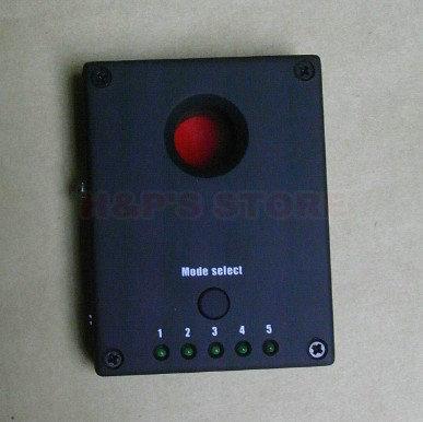 This hidden camera finder does not rely on detecting the RF signal from a wireless camera, it uses an array of bright LEDs that create a strong reflection from a camera's lens that is easily detected.